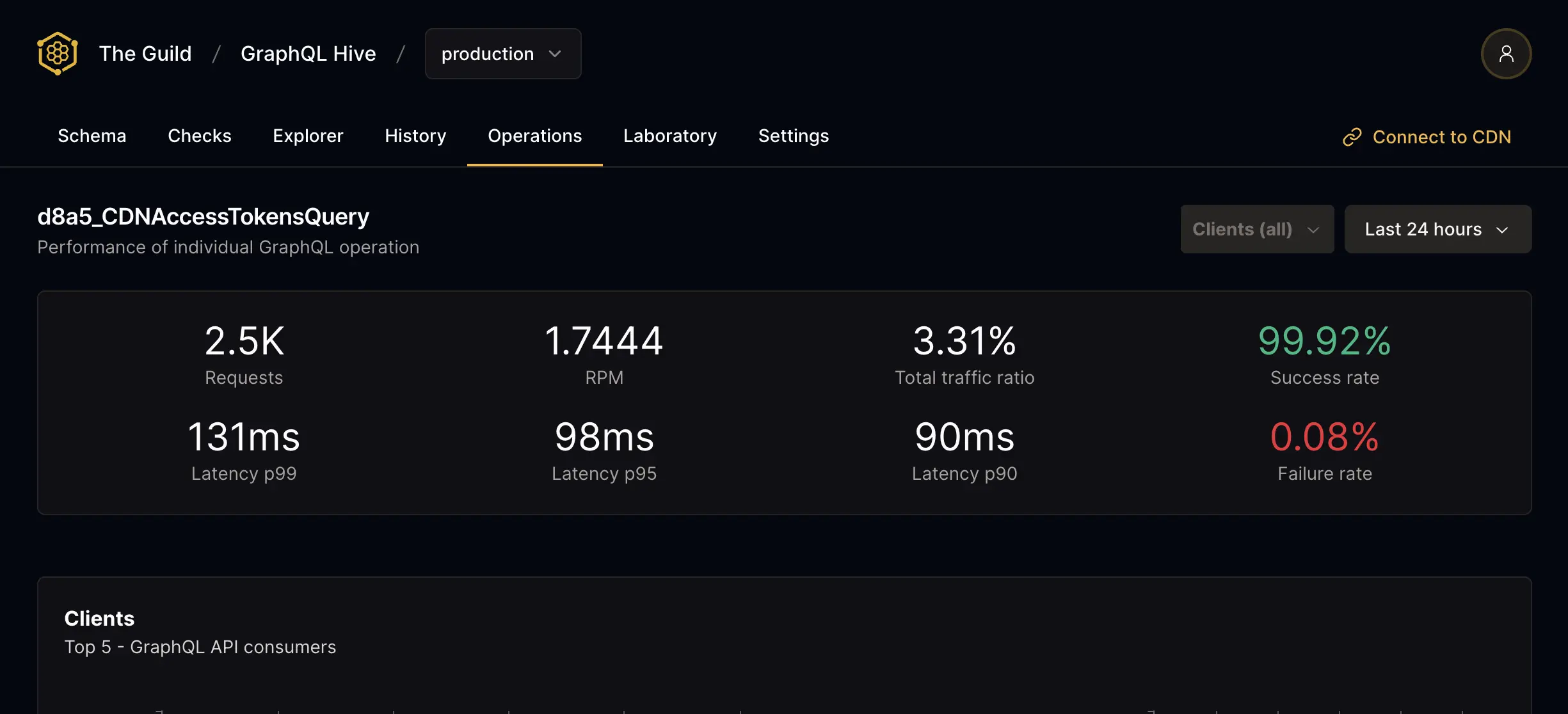 Hive is essential to us handling more than 750M GraphQL requests every month. We ship with certainty that schema changes will not break clients. The atLeastOnceSampler is crucial to capture telemetry from less-often run operations. The schema explorer condenses hours of searching through Github for client usage down to minutes.